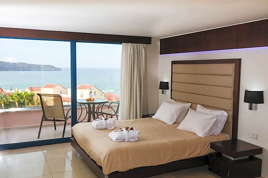 Double Room with Side Sea View is 301 square feet and includes either a double bed 131-150 width or a king-size bed 150-183 width plus terrace, hairdryer, and safe.
