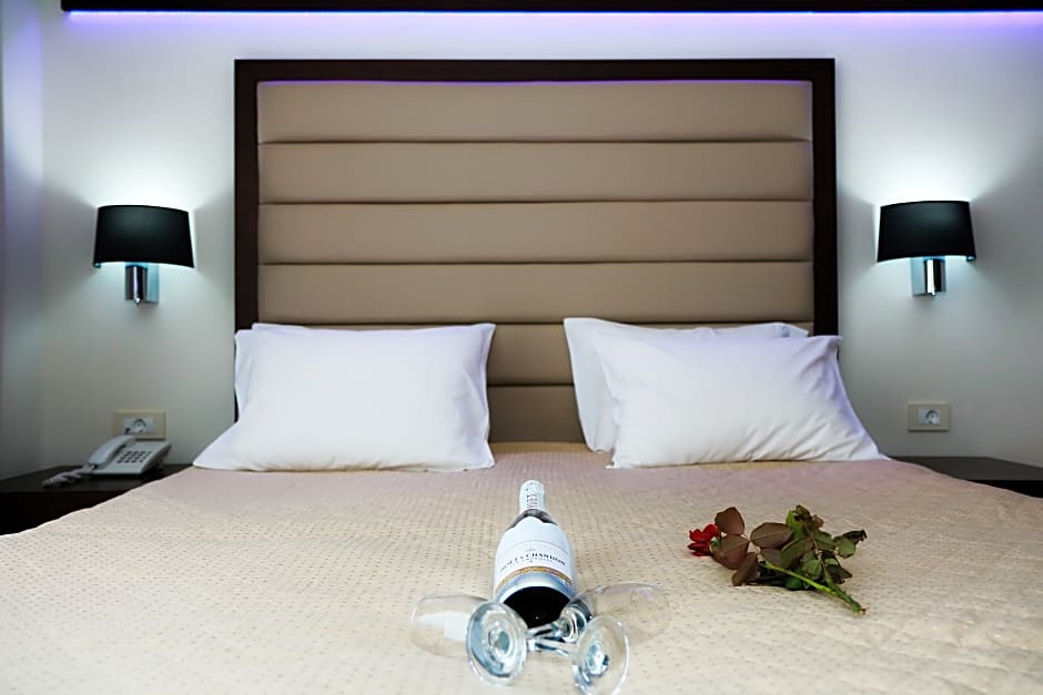 Double Room with Sea View is 215 square feet and includes either a double bed 131-150 width or a king-size bed 150-183 width plus terrace, hairdryer, and safe.